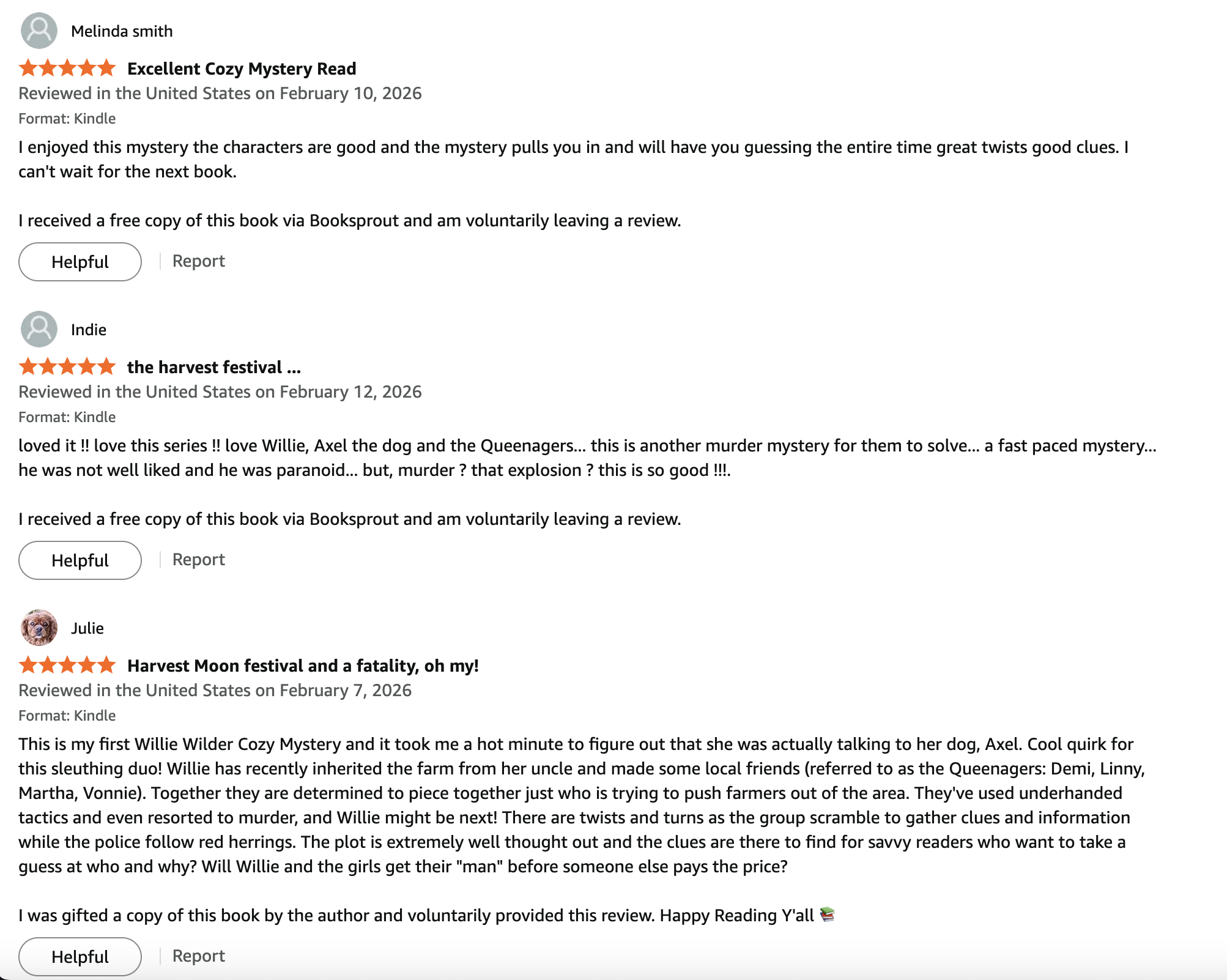 Then a key witness disappears just hours before the Harvest Festival begins, and Willie realizes she’s out of time.
